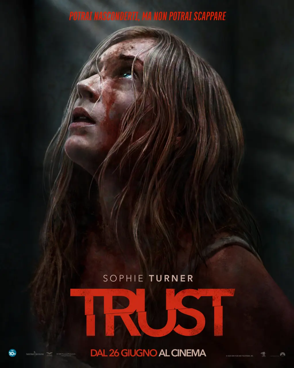 Eagle Pictures ha rilasciato il trailer poster ufficiali di Trust, thriller diretto da Carlson Young con protagonista Sophie Turner (la serie Il trono di spade, X-Men: Dark Phoenix, Alone) nei cinema dal 26 giugno 2025.