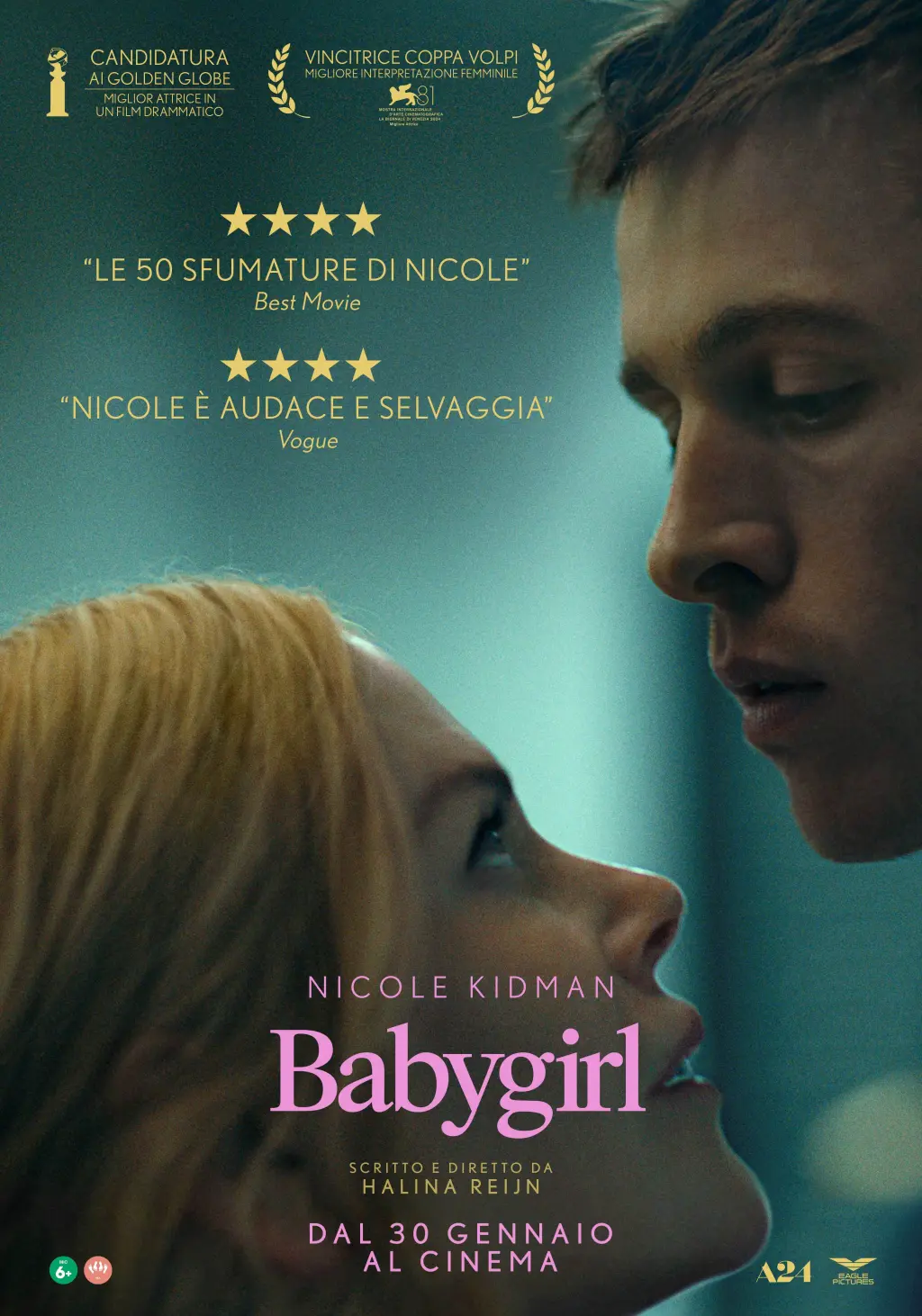 Babygirl uscirà il 30 gennaio 2025 nelle sale italiane, distribuito da Eagle Pictures.