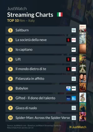 I primi due posti della consueta classifica dei film più visti dagli amanti dello streaming sono, inaspettatamente, uguali a quelli della scorsa settimana.