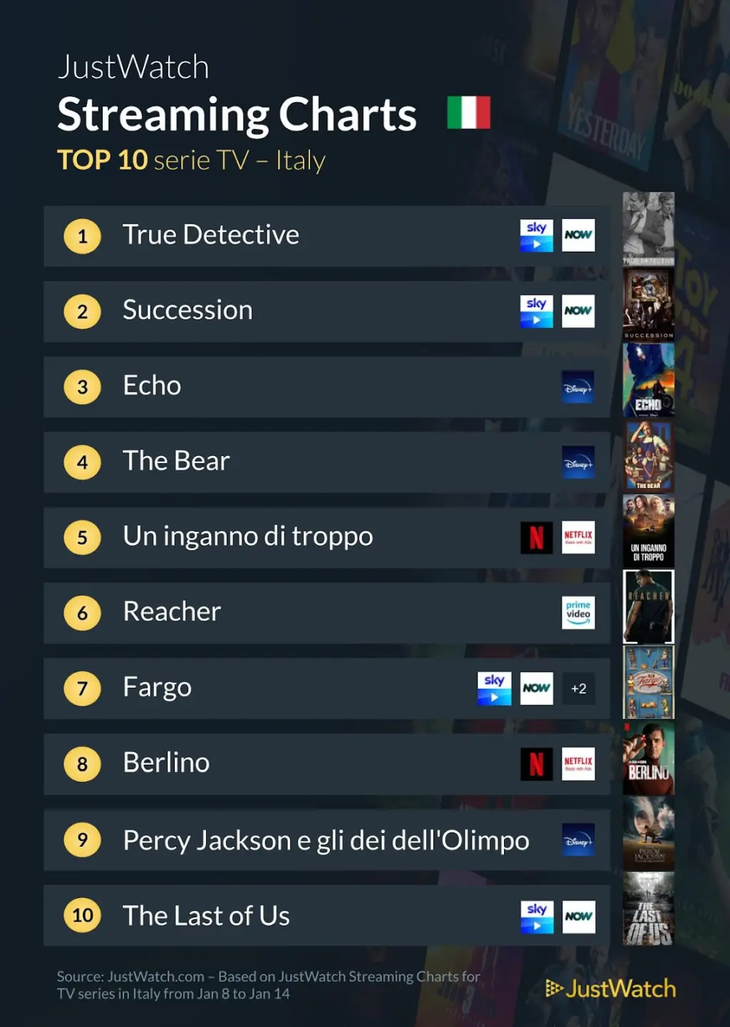 Secondo posto per Succession, show americano che ha ottenuto ben sei premi agli Emmy. Vista la risonanza mediatica che ha ottenuto durante la famosa cerimonia, è molto probabile che lo vedremo in classifica per diverso tempo.