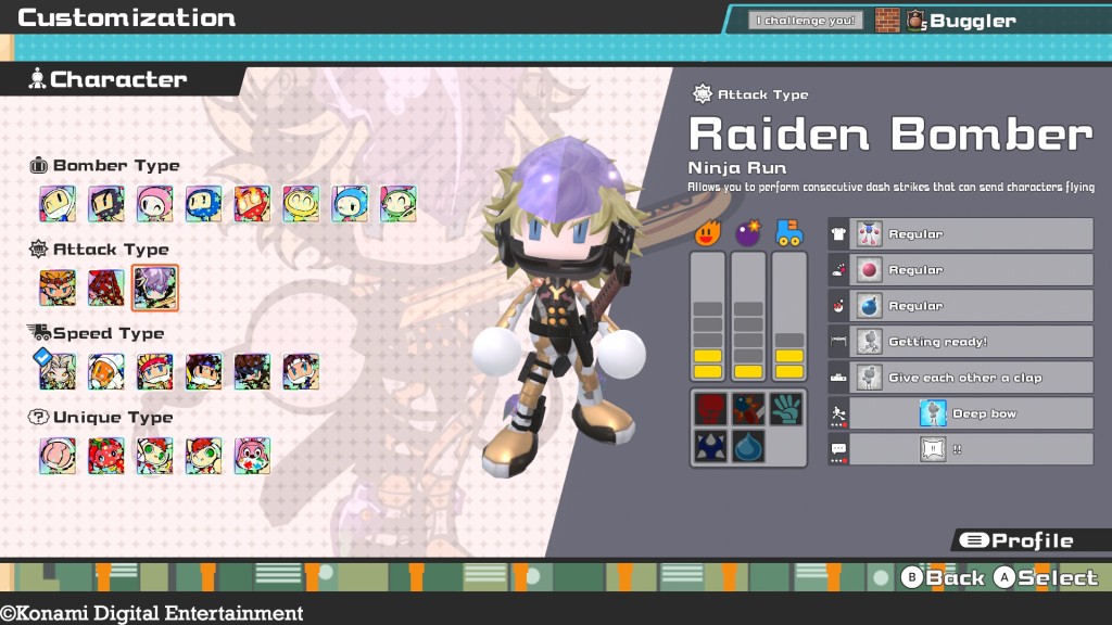 Super Bomberman R Online offre più di 100 diverse combinazioni di caratteristiche personalizzabili, inclusi numerosi costumi, accessori e, per la prima volta, skin per bombe, che modificano sia la bomba che l’esplosione stessa.